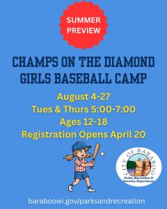 We are gearing up for summer, so we thought it would be a great time to give you a sneak peek at something new. Champs on the Diamond is our brand new girls baseball camp that helps young athletes build skills, confidence, and a love for the game. Stay tuned for registration details because you will not want to miss the fun on the field. Registration will open April 20. More information can be found at Champs on the Diamond.